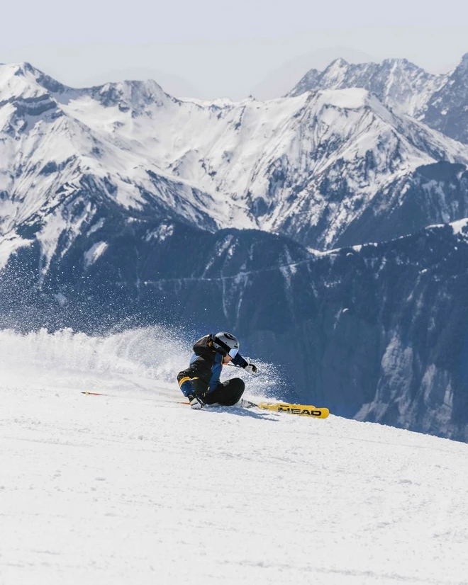 Chris smatra da je elektronički zatvarač od 20 fps na fotoaparatu EOS R5 tvrtke Canon nevjerojatan za akcijske fotografije kao što je fotografiranje skijanja za poznati sportski brend. „Znam da ću u jednom potezu imati 20 do 30 kvalitetnih fotografija za biranje”, kaže. „Možete i prilagoditi postavke automatskog izoštravanja fotoaparata EOS R5 kako biste dobili najbolje moguće postavke za ono što trebate.” Snimljeno modelom EOS R5 tvrtke Canon s objektivom Canon RF 70-200mm F2.8L IS USM pri 119 mm, 1/1250 s, f/7.1 i ISO 125. © Chris Priestley