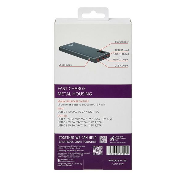 RivaPower Power Bank VA1021 (10000mAh) Metal 22.5W
